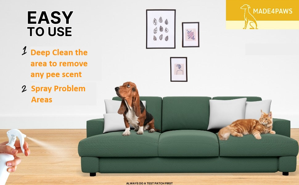 Our natural harmless spray will quickly stop your cat or dog, of any age, from urinating in areas you don't want them too. Simply spray the area to build up a scent barrier. This scent is designed to repel your pet from wanting to pee there as they can no longer smell their own urine and that area has been 'claimed' by the new strong scent of Acidic Citronella.